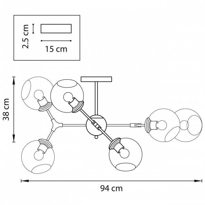Ширина люстры = (Ширина, см + Длина комнаты, см) / 10. |